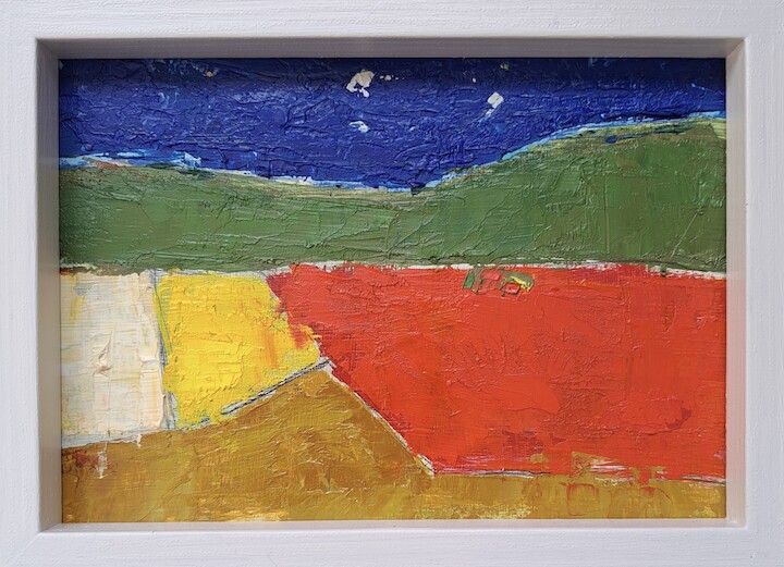 De schaduwen van het lijstje vallen op deze foto op het schilderijtje.