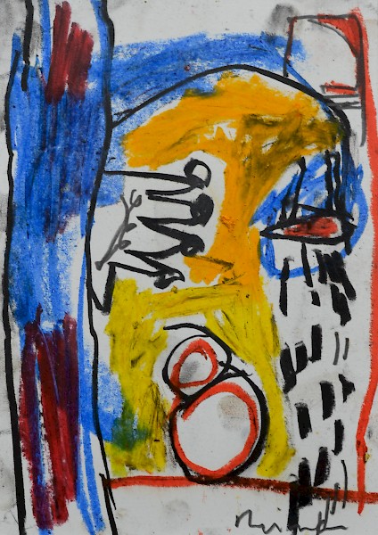 zonder titel - gesigneerd "Reina" rechtsonder - 20,5 x 14,5 cm - vetkrijt op papier - onder passe-partout van 30 x 24 cm